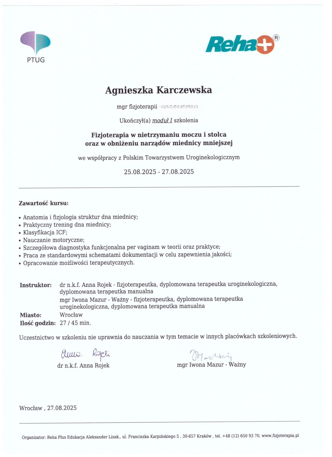 • Fizjoterapia Aga Karczewska • fizjoterapia uroginekologiczna •