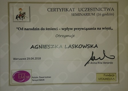 Pani Agnieszka pomogła mi uporać się z silnymi napadami PTSD. Potrafiła swoim spostrzegawczym wzrokiem wniknąć w głąb traumy i pomogła mi przetworzyć emocje, które były we mnie zablokowane i niezrozumiałe na polu emocjonalnym (chociaż na poziomie logicznym niby wszystko wyglądało +/- w porządku…). Dzięki terapii EMDR z panią Agnieszką byłam w stanie pozbyć się psychosomatycznych objawów PTSD a psychoterapia z panią Agnieszką pomogła zrozumieć własne emocje i sytuacje, w których się znajdowałam. Wnikliwa obserwacja prowadzona przez panią Agnieszkę i jej adekwatne zachowanie pozwoliło mi wyjść z automatycznego schematu, dzięki czemu potrafiłam się otworzyć emocjonalnie. Dzięki poznanym na terapii technikom byłam w stanie lepiej radzić sobie zarówno w trudnych momentach jak i w życiu przez co stałam się bardziej świadoma siebie