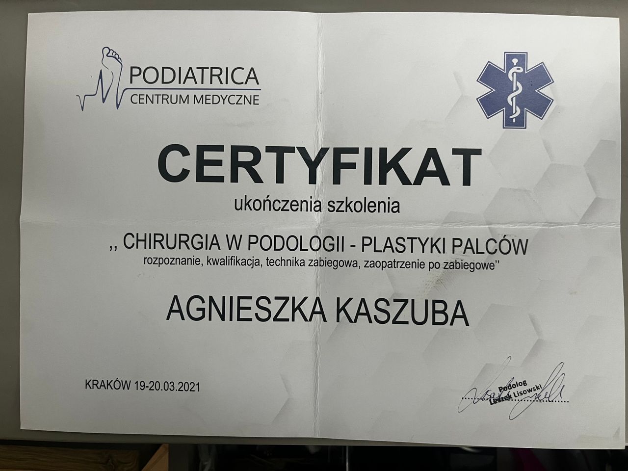 Pani Agnieszka to najlepszy podolog, z przyjemnością mogę polecić każdej osobie, która ma problem i chce mieć zdrowe stopy.