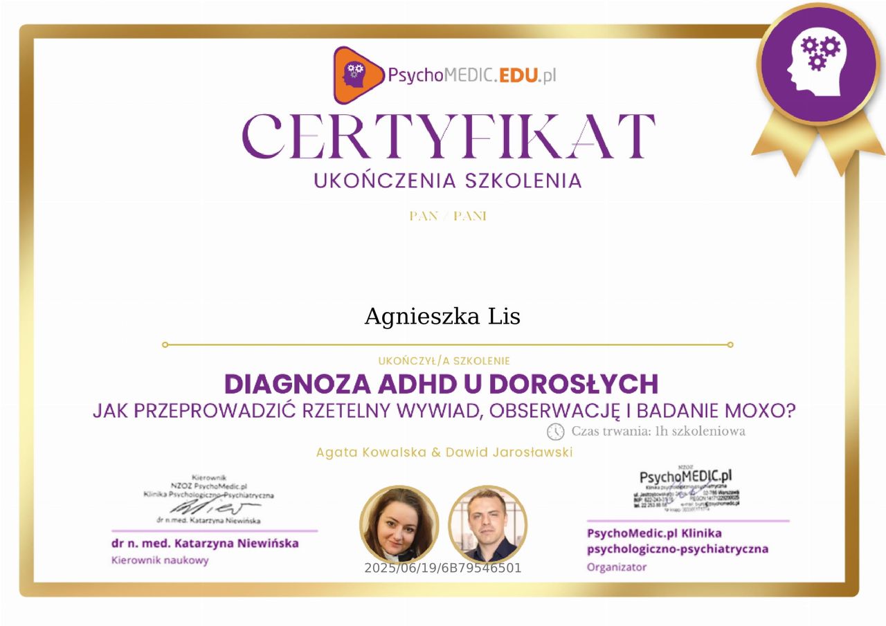 NIE przeprowadzam kontynuacji procesu diagnostyki ADHD na podstawie opinii psychologicznych z spoza Poradni Psychomedic z diagnostami,z którymi nie współpracuję w ramach zespołu.