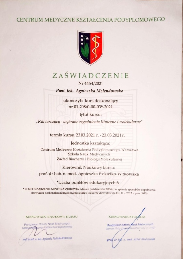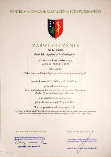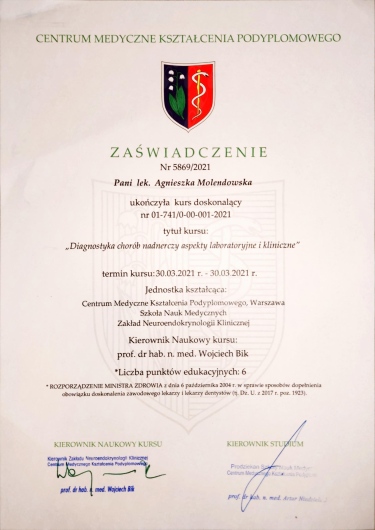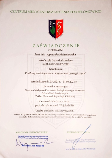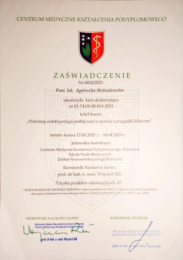 Z przyjemnością informujemy o nawiązaniu współpracy z dr Agnieszką Molendowską – specjalistką chorób wewnętrznych i endokrynologii.