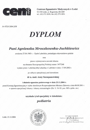 Świetna lekarka! Pani doktor Agnieszka Mroczkowska-Juchkiewicz ma wspaniałe podejście do dzieci — spokojna, cierpliwa i bardzo dokładna. Widać, że naprawdę zna się na rzeczy i chce pomóc. Polecam z całego serca!
