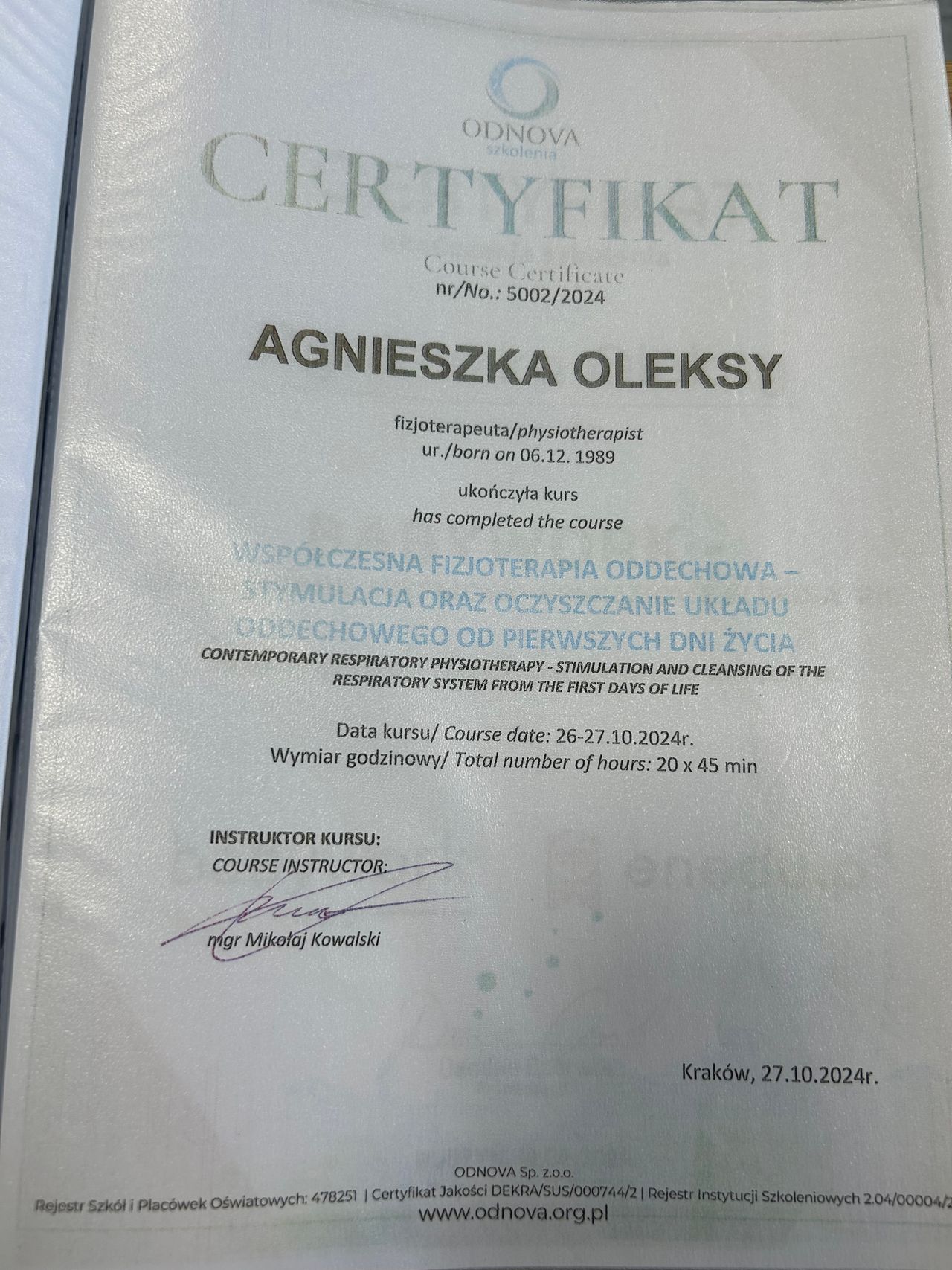 Serdecznie polecam Panią Agnieszkę. Byłam z synkiem na drenażu autogenicznym z powodu zalegającej wydzieliny w płucach. Poprawa była już po powrocie do domu ;)
