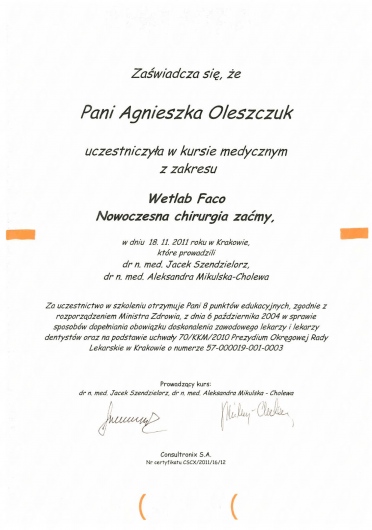 Pani Doktor wykazuje pełne zaangażowanie w procesie badania i wywiadu pacjenta. Niezwykle przyjazna i ciepła atmosfera. Polecam każdemu wizytę u Pani Doktor Agnieszki Oleszczuk. Wizyta u okulisty może być przyjemnym doświadczeniem!