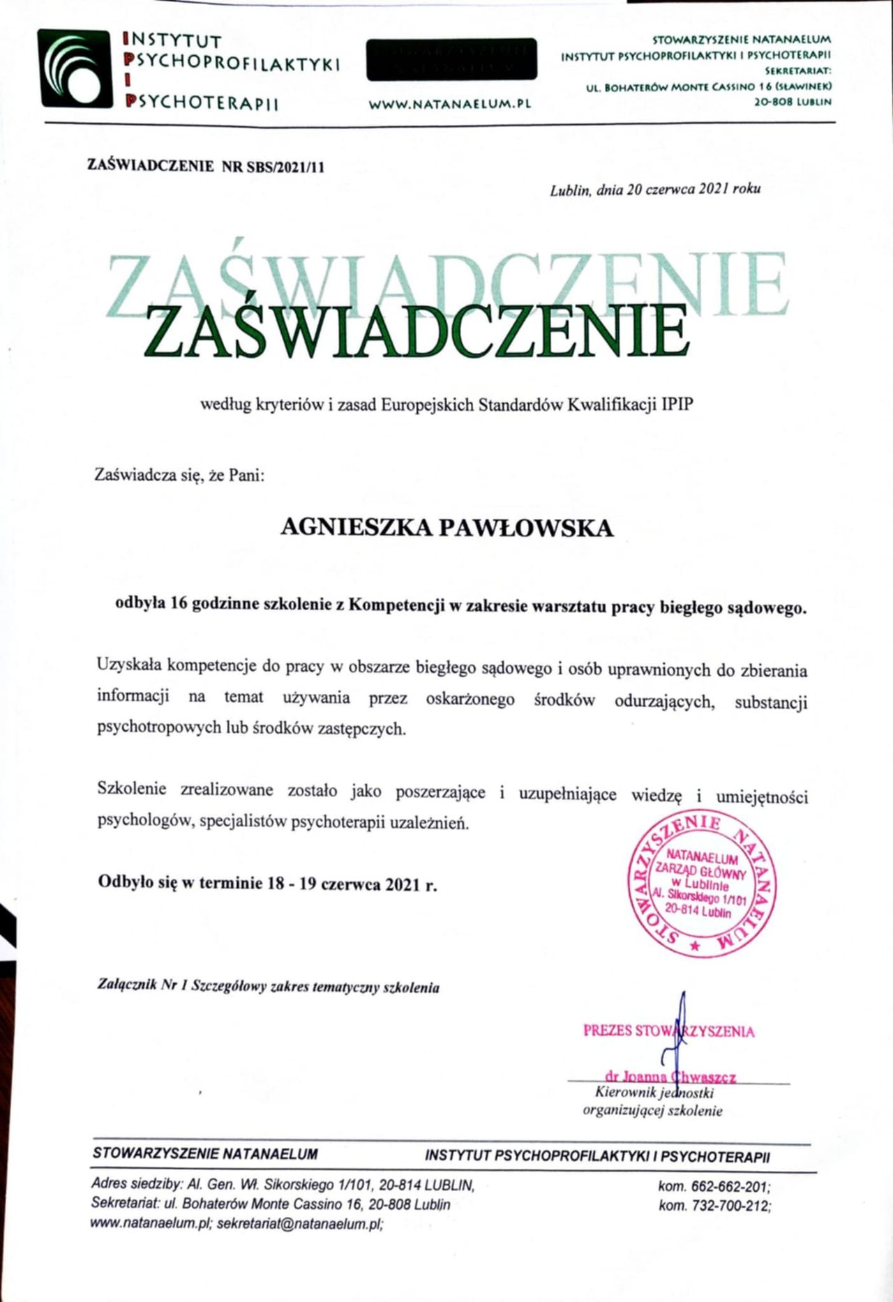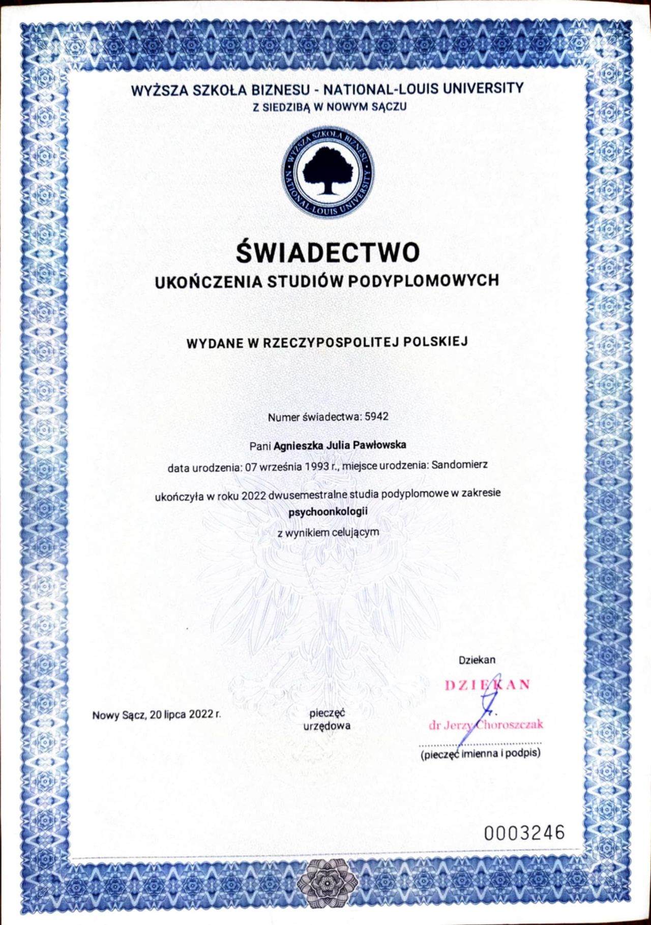 Jaki jest zakres porad oferowanych przez Agnieszka Pawłowska?Agnieszka Pawłowska to psycholog, psychoonkolog, biegły sądowy. Na podstawie swojego doświadczenia i wykształcenia Agnieszka Pawłowska oferuje usługi takie jak: konsultacja biegłego sądowego.
