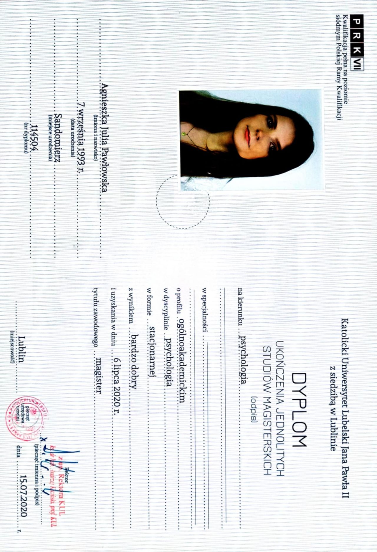 Pani Agnieszka to bardzo ciepła i empatyczna osoba. Byłam już u wielu psychologów i tylko ona potrafiła mi pomóc i mnie wysłuchać. Pani Psycholog ma ogromną wiedzę i widać, że lubi swoją pracę. Jest niezwykle oddana pacjentowi. Szkoda, że nie trafiłam do Pani doktor wcześniej, może życie byłoby o wiele lepsze, spokojniejsze, z poukładaną głową. Jeżeli ktoś szuka cudownego psychologa to Pani Agnieszka właśnie taka jest. Polecam!