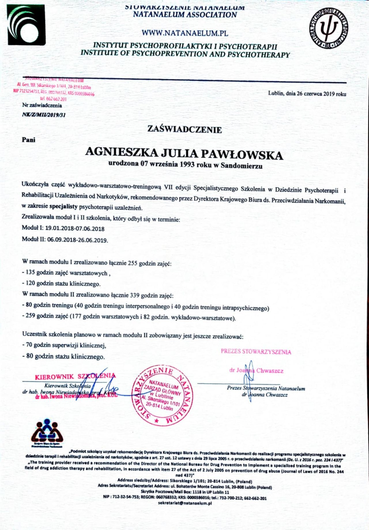 Czy Agnieszka Pawłowska przyjmuje online, bez konieczności pojawiania się w placówce?Nie, w tym momencie Agnieszka Pawłowska nie oferuje konsultacji online.