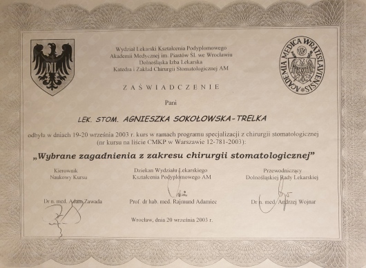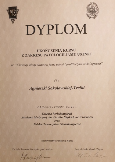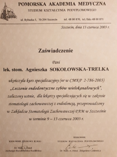 Jaki jest zakres porad oferowanych przez Agnieszka Sokołowska-Trelka?Agnieszka Sokołowska-Trelka to stomatolog, protetyk stomatologiczny. Na podstawie swojego doświadczenia i wykształcenia Agnieszka Sokołowska-Trelka oferuje usługi takie jak: Konsultacja stomatologiczna, znieczulenie miejscowe, konsultacja implantologiczna, protezy, badanie RTG, wypełnienie w zębie mlecznym, nakładkowe wybielanie zębów, scaling, laseroterapia stomatologiczna, konsultacja protetyczna.