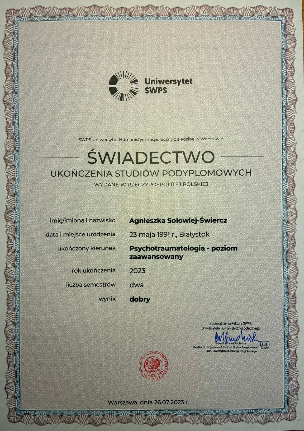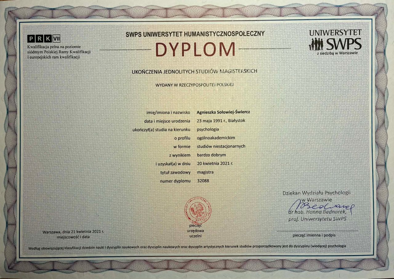 Jaki jest zakres porad oferowanych przez Agnieszka Sołowiej-Świercz?Agnieszka Sołowiej-Świercz to psycholog.