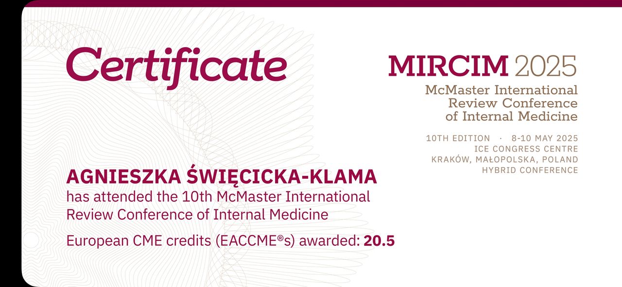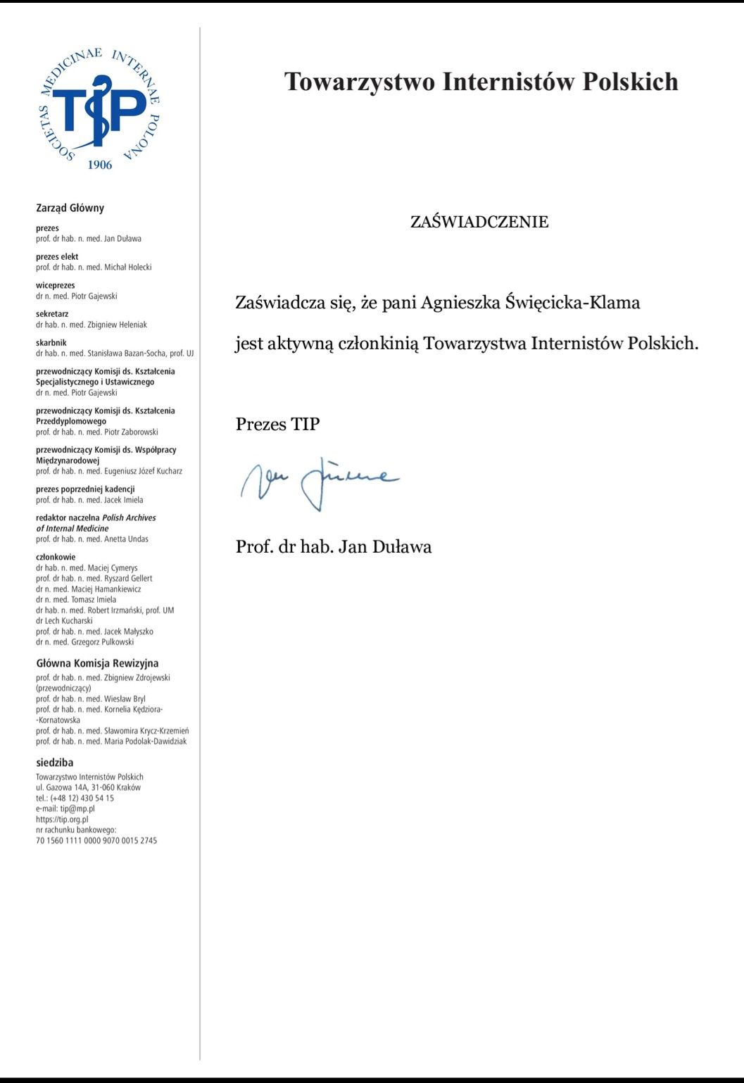 Regularnie uczestniczę w różnego rodzaju konferencjach naukowych, czytam piśmiennictwo naukowe, najnowsze doniesienia. Jestem członkinią Polskiego Towarzystwa Internistycznego, Polskiego Towarzystwa Leczenia Otyłości i Polskiego Towarzystwa Badań nad Otyłością.