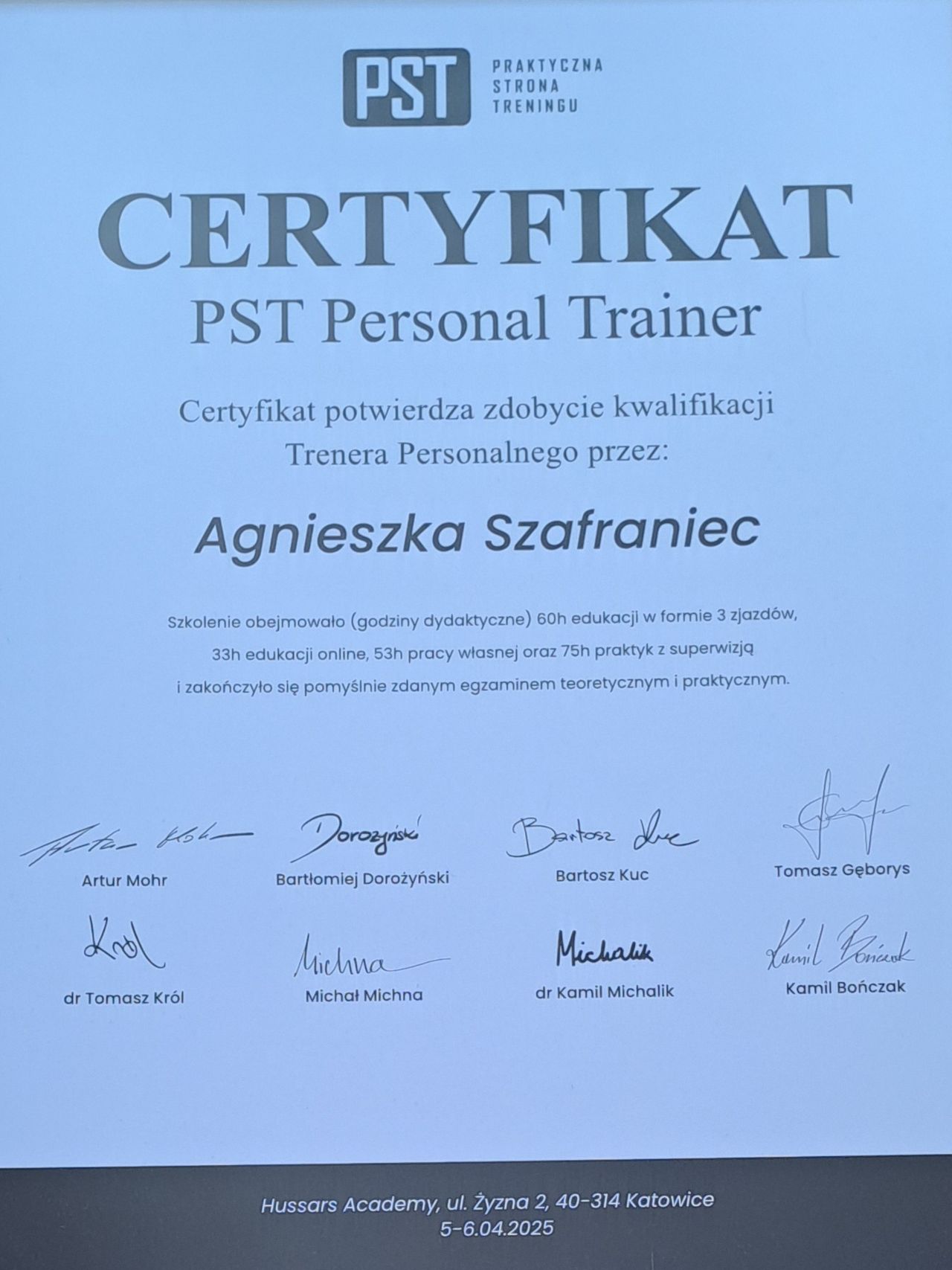 Pani Agnieszka, dokładnie, z zaangażowaniem wszystko wytłumaczyła i pokazała jak należy przeprowadzać ćwiczenia. Szczerze polecam.