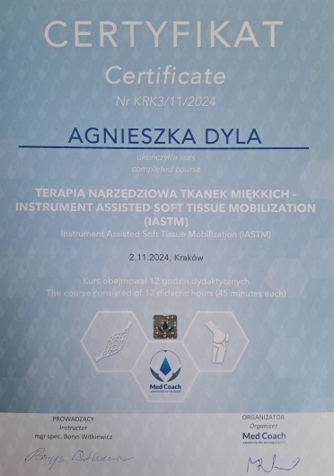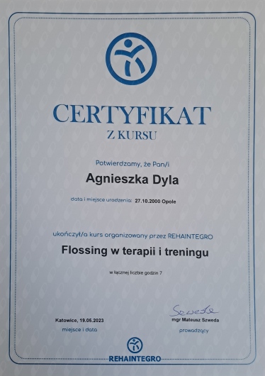 Bardzo dziękuję za opinię! Cieszę się, że aktywna forma rehabilitacji i moje podejście okazały się trafne!