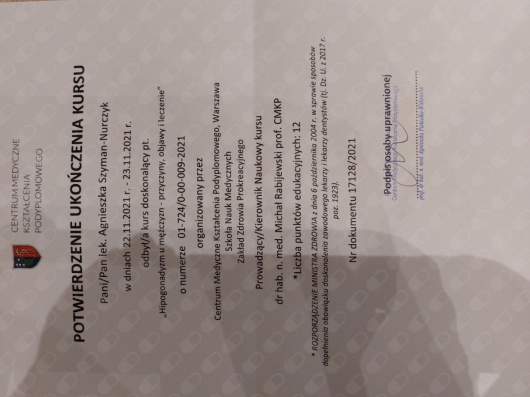 Leczyłam się u doktor Szyman-Nurczyk kilka lat, gdy przyjmowała jeszcze w Starogardzie Gdańskim. To bardzo empatyczna osoba, dokładnie wyjaśnia problem, a co najważniejsze - patrzy całościowo na pacjenta. Wcześniej leczyłam się u innego endokrynologa, ale bezskutecznie. Pani doktor zwiększyła mi nieco dawki hormonów i moje wyniki się pięknie wyregulowały. Pomogła mi również z innym problemem zdrowotnym, kierując na leczenie do odpowiedniego specjalisty, a nie udawała, że ten problem nie istnieje. Bardzo mi Pani pomogła w obu kwestiach i dziękuję serdecznie za pomoc i okazane serce i wsparcie.