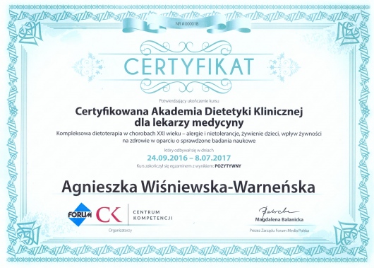 Pozdrawiam serdecznie• Centrum Dietetyki Klinicznej Agnieszka Wiśniewska - Warneńska • konsultacja dietetyczna (pierwsza wizyta) •