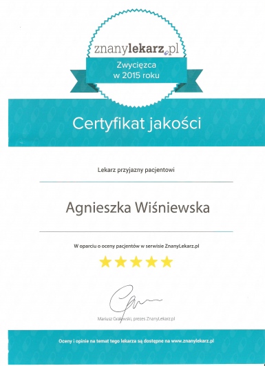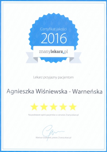 Agnieszka Wiśniewska-Warneńska: co mówią pacjenci?175 osób dodało swoją opinię. Agnieszka Wiśniewska-Warneńska ma średnią ocen 5 (na 5 gwiazdek).
