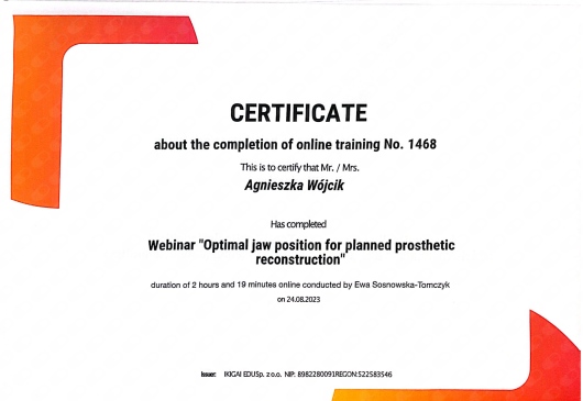 Bardzo ważna jest dla mnie szeroko rozumiana estetyka- czyli harmonia kształtów, kolorów będąca w równowadze z osobowością i stylem życia pacjenta.