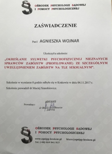 Po kilku miesiącach psychoterapii mogę z czystym sumieniem polecić panią Agnieszkę Wojnar. Terapia która odbyłam u Pani dała nową jakość mojemu życiu i mimo że już się zakończyła mam narzędzia do dalszej pracy własnej. Wizyty odbywały się w bardzo miłej atmosferze, były profesjonalne, z dozą dobrego humoru dzięki czemu czułam się rozluźniona i w pełni zrozumiana. Polecam i pozdrawiam Panią! A na ostatnim urlopie mąż powiedział że mnie nie poznaje w dobrym tego słowa znaczeniu