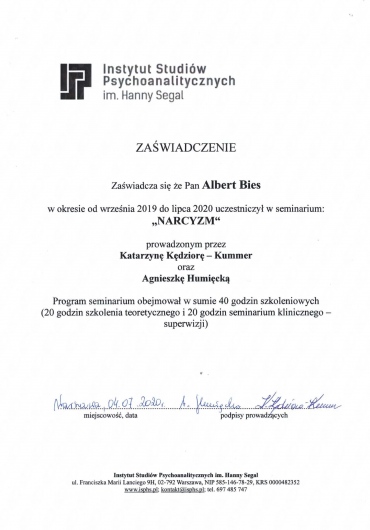 W gabinecie Pana Alberta profesjonalizm, obiektywizm, szacunek, uczciwość, szczerość, ostrożność, przestrzeń, wsparcie, zrozumienie, pomoc, empatia, dyskrecja, to wszystko po prostu na najwyższym poziomie. Spotkanie z Panem Albertem to jedno z najważniejszych, autentycznych spotkań z drugim człowiekiem w moim życiu.