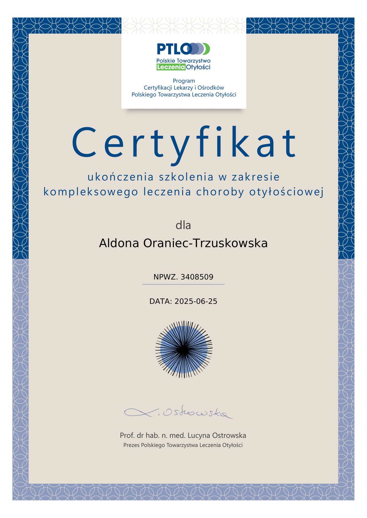Pani Doktor ukończyła studia lekarskie na Śląskim Uniwersytecie Medycznym 2016 roku. Egzamin specjalizacyjny z medycyny rodzinnej obroniła w 2021 roku. Jest członkiem Polskiego Towarzystwa Medycyny Rodzinnej oraz Polskiego Towarzystwa Leczenia Otyłości. Certyfikację leczenia otyłości oraz studia podyplomowe z Psychodietetyki na Uniwersytecie SWPS w Krakowie ukończyła w 2025 roku. Stale poszerza swoją wiedzę przez udział w konferencjach krajowych. Działa zgodnie z Evidence Bace Medicine (EBM). W swojej pracy wykorzystuje narzędzia dialogu motywacyjnego oraz z obszaru coachingu.