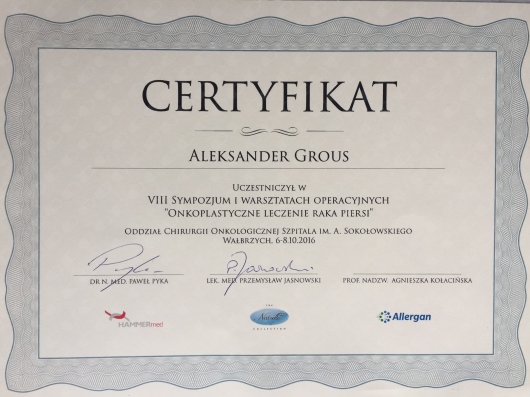 - chirurgii rekonstrukcyjnej i onkoplastycznej gruczołu piersiowego
