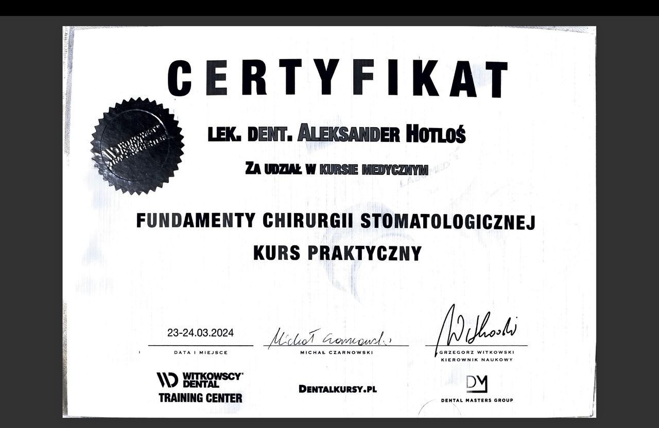 Jesteś już po wizycie u lek. dent. Aleksander Hotloś? Daj znać, co myślisz. Inni pacjenci będą wdzięczni za pomoc w wyborze najlepszego specjalisty.