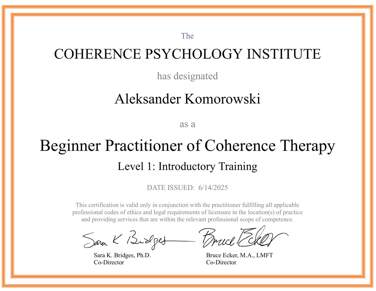 Spotkanie merytoryczne i prowadzone w atmosferze zrozumienia. Pan Aleksander uważnie słucha, formułuje trafne pytania i proponuje konkretne metody pracy nad emocjami. Polecam.