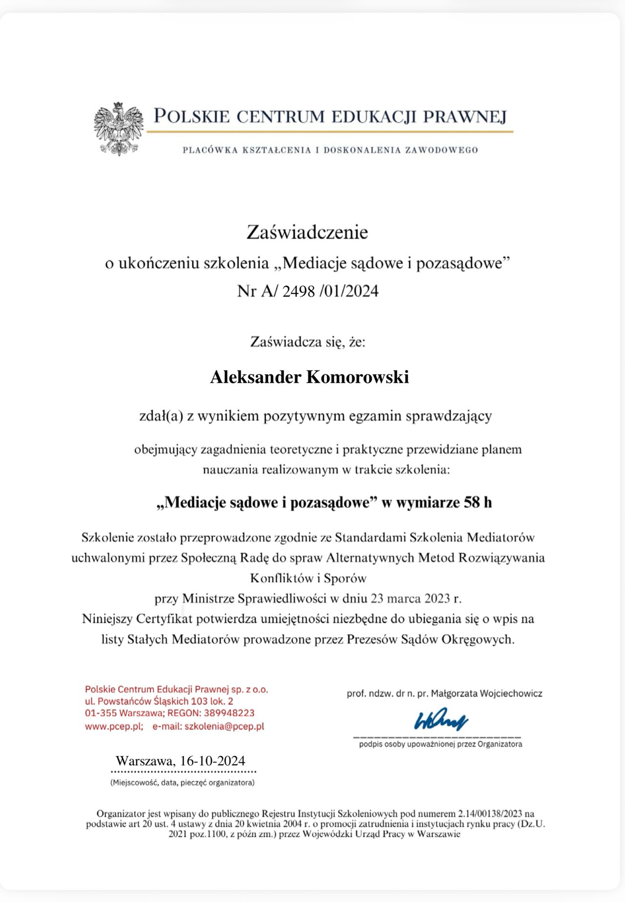 Gdzie Aleksander Komorowski ma swój gabinet?Aleksander Komorowski przyjmuje pod adresem: