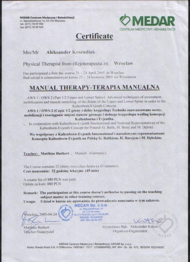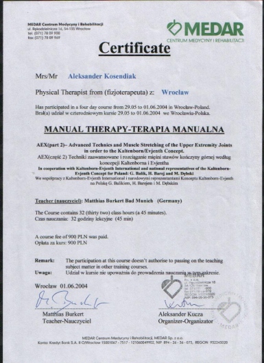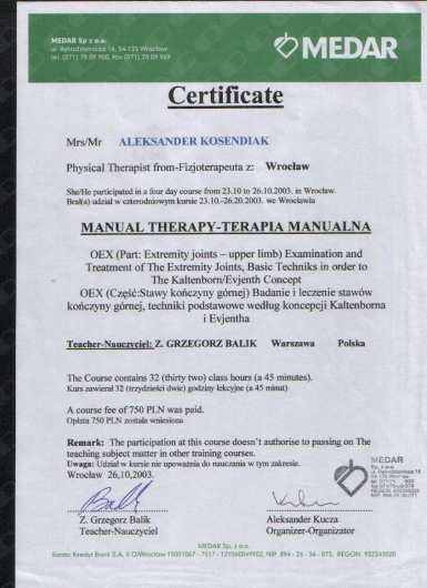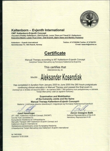 2006 - Terapeuta Manualny (Kaltenborn-Evjenth)