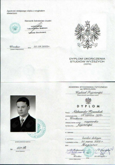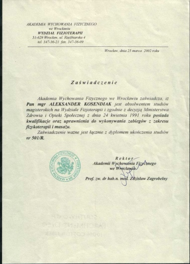 2002 - Magister fizjoterapii (AWF Wrocław)