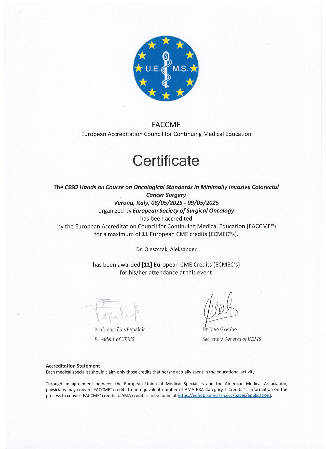 W trakcie specjalizacji (Chirurg onkologiczny)