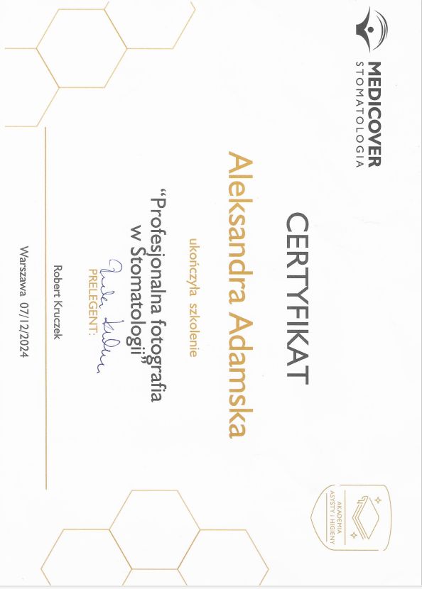 Na co dzień pracuję zarówno z dziećmi, jak i dorosłymi, zapewniając kompleksową opiekę w zakresie profilaktyki i higieny jamy ustnej. Szczególnie bliska jest mi praca z pacjentami ortodontycznymi – przez dwa lata ściśle współpracowałam z lekarzem ortodontą, zdobywając cenne doświadczenie i praktyczne umiejętności w opiece nad osobami przed i w trakcie leczenia aparatem.