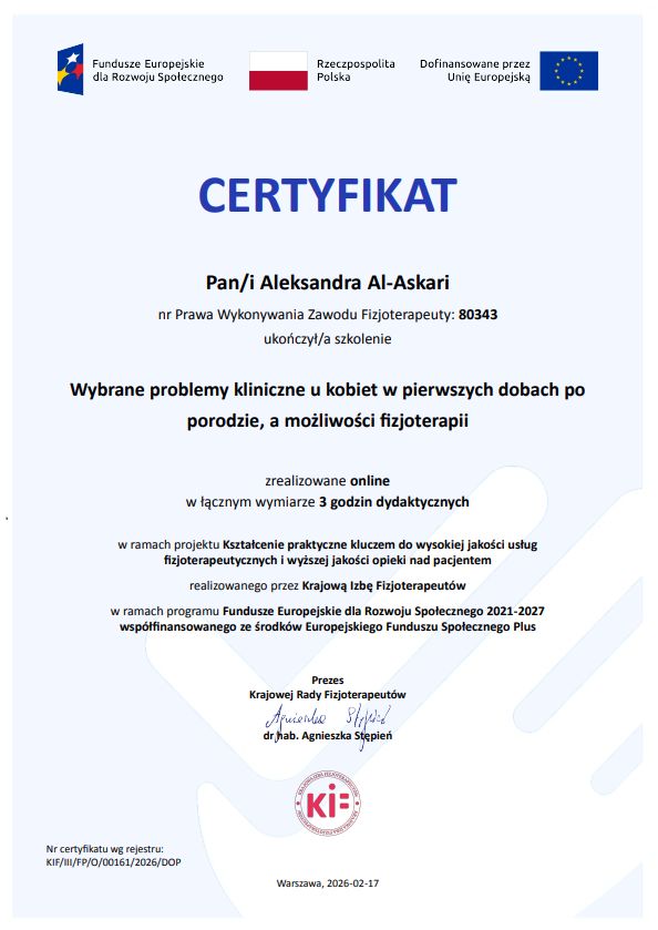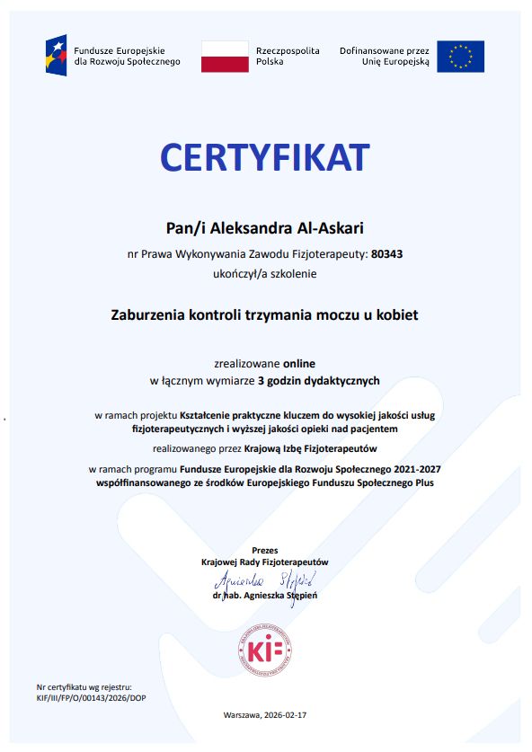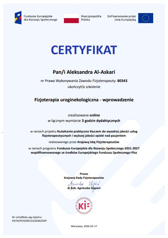 Pracuję zarówno z kobietami, jak i z pacjentami wymagającymi kompleksowej rehabilitacji pourazowej. Moim celem jest skuteczny powrót do codziennej aktywności, poprawa jakości życia i komfortu funkcjonowania.