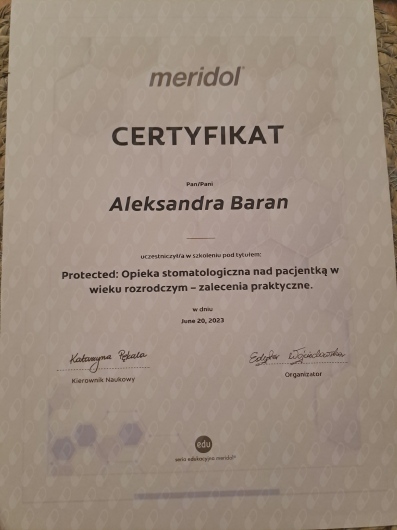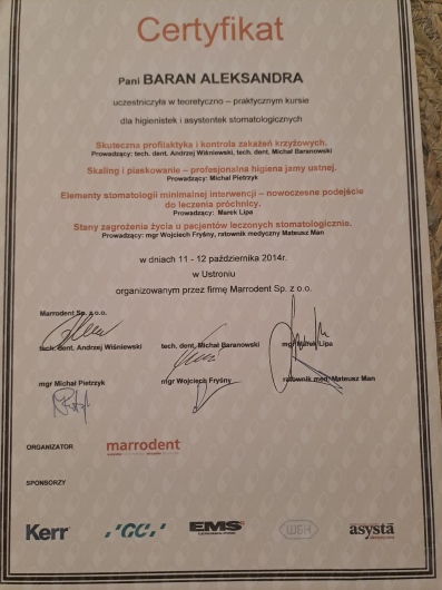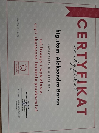 Szczerze polecam Panią Aleksandrę. Cenię u niej dokładność, delikatność oraz profesjonalne podejście w przebiegu całej wizyty.