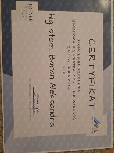 Jestem bardzo zadowolona z przebiegu higienizacji. Zabieg był wykonany delikatnie i bezboleśnie. Wszystko zostało dokładnie wytłumaczone. Pani Ola jest osobą empatyczną i perfekcyjnie wykonującą swoją pracę. Serdecznie polecam wizyty u Pani Aleksnadry.