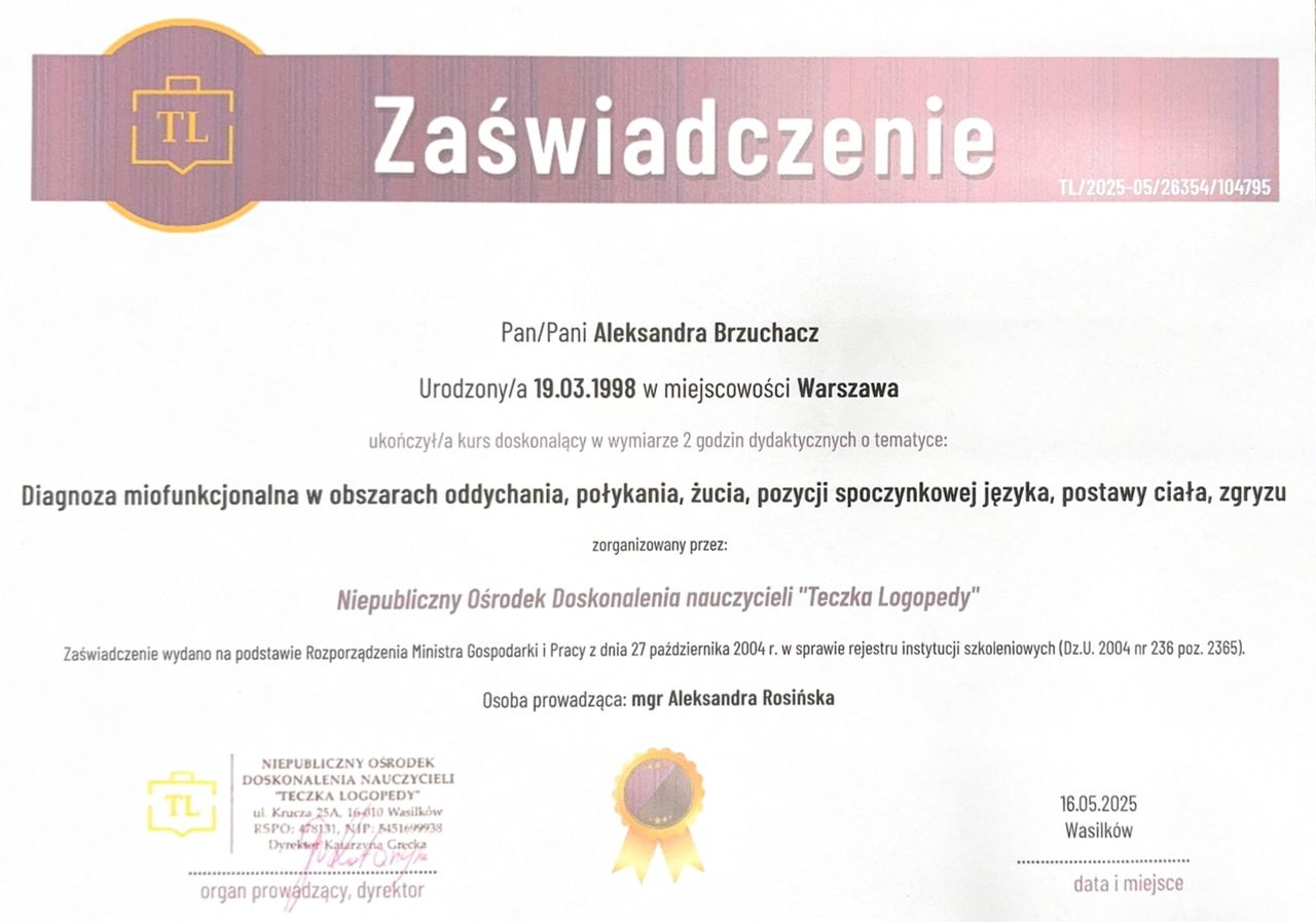 Jaki jest zakres porad oferowanych przez Aleksandra Brzuchacz?Aleksandra Brzuchacz to logopeda. Na podstawie swojego doświadczenia i wykształcenia Aleksandra Brzuchacz oferuje usługi takie jak: konsultacja logopedyczna, diagnoza logopedyczna.