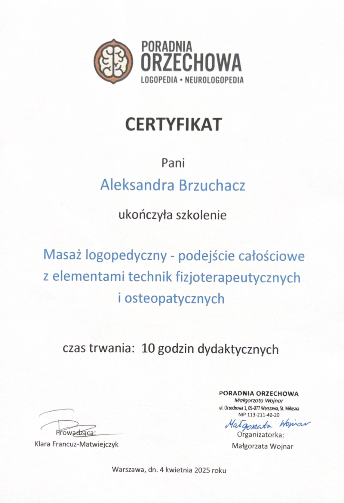 W praktyce zawodowej łączę terapię miofunkcjonalną z masażem logopedycznym z elementami technik fizjoterapeutycznych i osteopatycznych, który może być pomocny pacjentom z nieprawidłowym torem oddechowym, migreną, bruksizmem czy problemami ortodontycznymi.