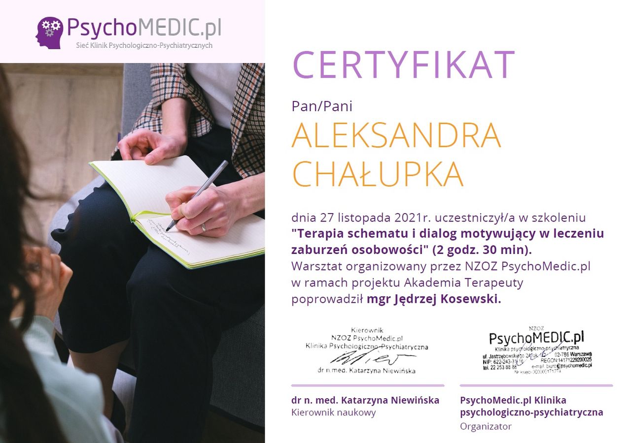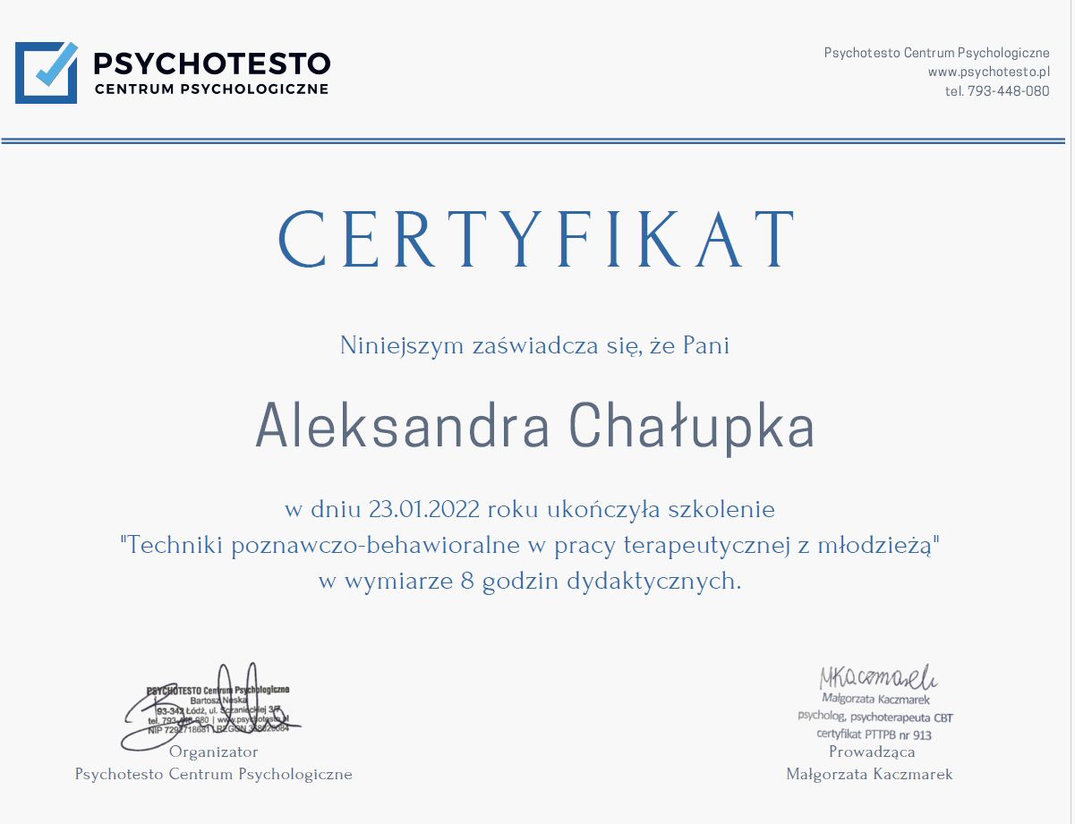 Gdzie Aleksandra Chałupka ma swój gabinet?Aleksandra Chałupka przyjmuje pod adresem: