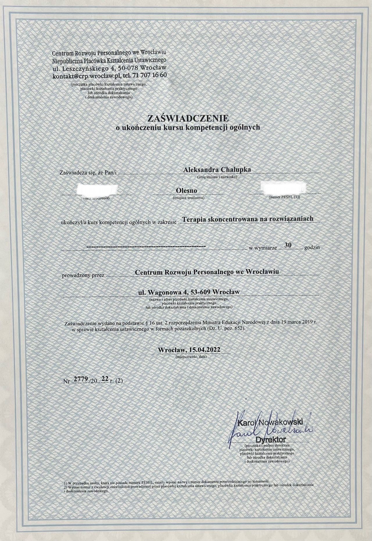 Wizyty u Pani Aleksandry były dla mnie ogromnym wsparciem w trudnym, emocjonalnym okresie. Dzięki naszym spotkaniom znacząco poprawiło się moje samopoczucie, a ja sama nauczyłam się zupełnie inaczej podchodzić do swoich emocji. Potrafię spojrzeć na sytuacje z perspektywy trzeciej osoby, spokojnie je ocenić i świadomie reagować. Czuję, że jestem bardziej uważna i lepiej rozumiem siebie. Jestem bardzo wdzięczna za profesjonalną pomoc i serdeczne podejście
