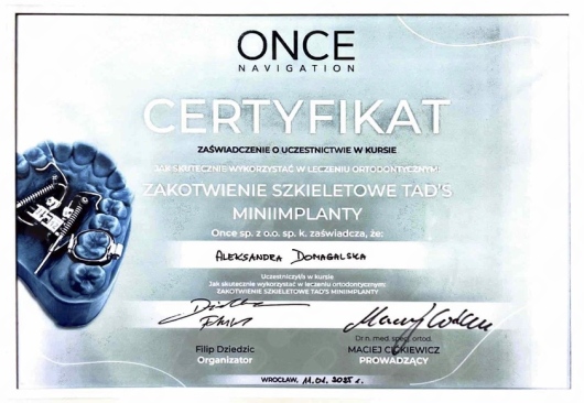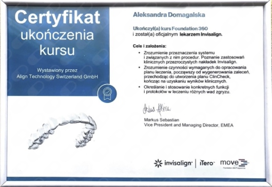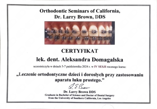 Zajmuję się leczeniem ortodontycznym dzieci i dorosłych, stale podnosząc swoje kwalifikacje poprzez udział w licznych kursach i międzynarodowych szkoleniach m.in. „Orthodontic Seminars of California” prowadzonych przez dr Larry’ego Brauna. Jestem także certyfikowanym lekarzem systemu nakładkowego Invisalign, co pozwala mi oferować pacjentom nowoczesne i komfortowe metody leczenia. Jako autorka publikacji naukowych łączę najnowsze osiągnięcia naukowe z codzienną praktyką kliniczną.