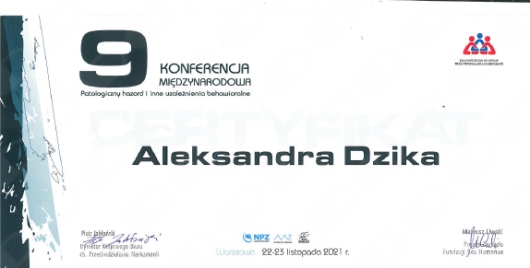 - na Oddziale Dziennym Ośrodka Terapii Uzależnień w Instytucie Psychiatrii i Neurologii w Warszawie.