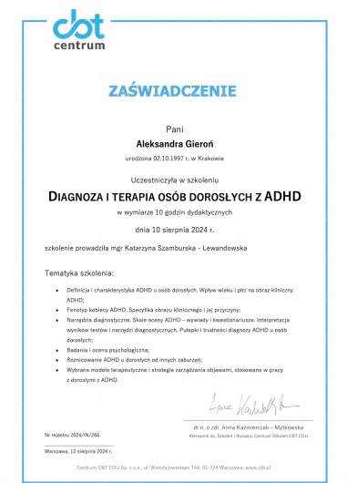 • Aleksandra Gieroń - Psycholog • diagnoza ADHD dla dorosłych •