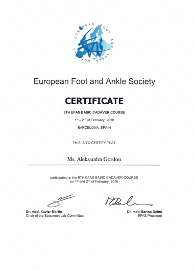 Jestem członkiem PTOiTr (Polskie Towarzystwo Ortopedii i Traumatologii Narządu Ruchu) oraz PFAS (Polish Foot and Ankle Society) oraz EFAS (European Foot and Ankle Society)
