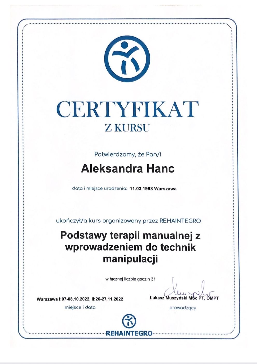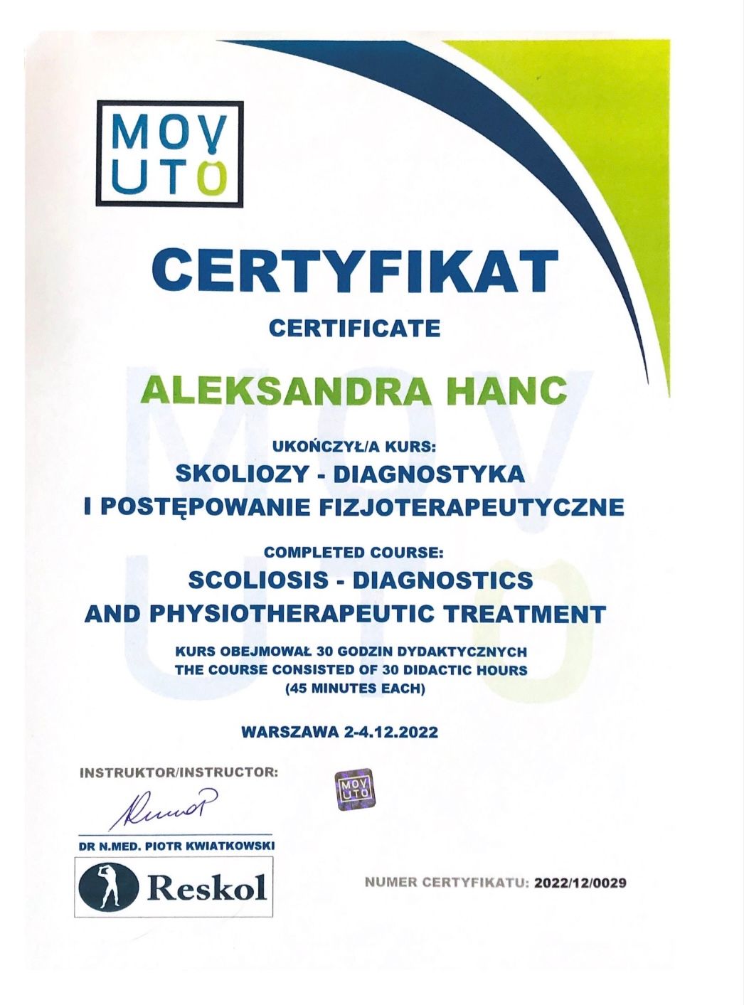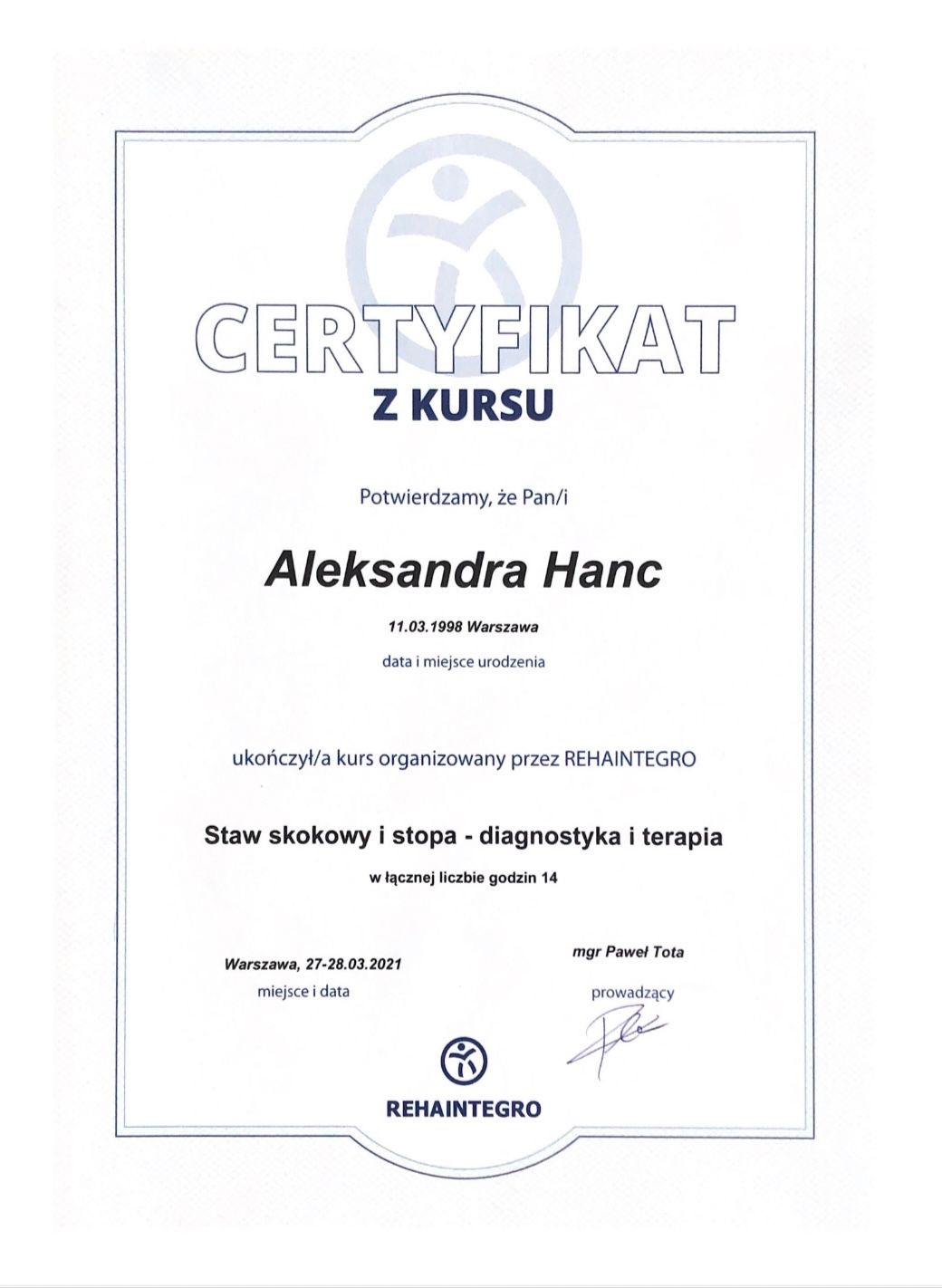 Mgr Aleksandra Hanc w zespole Idea Ortopedia (ul. Piękna 15, Warszawa).