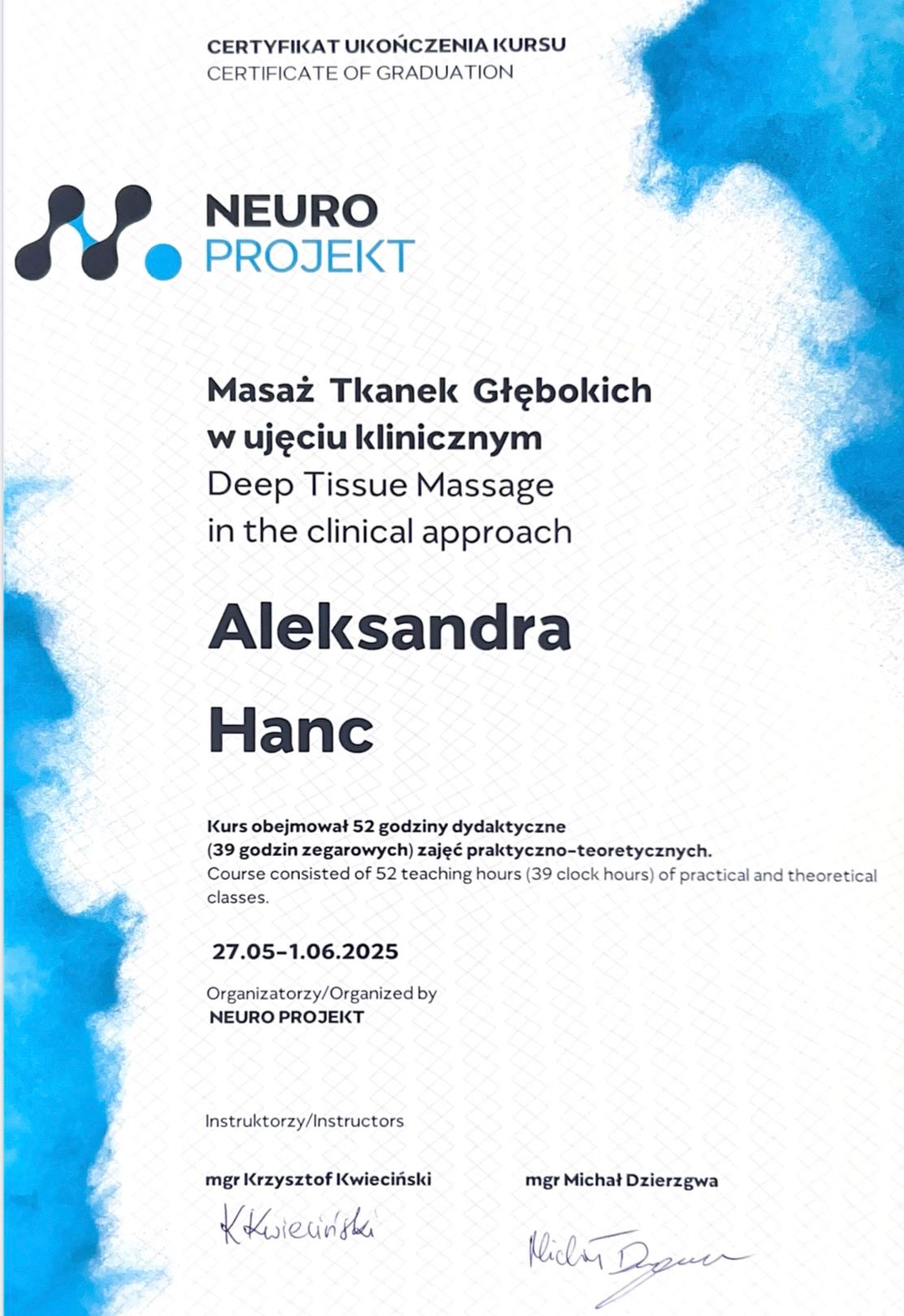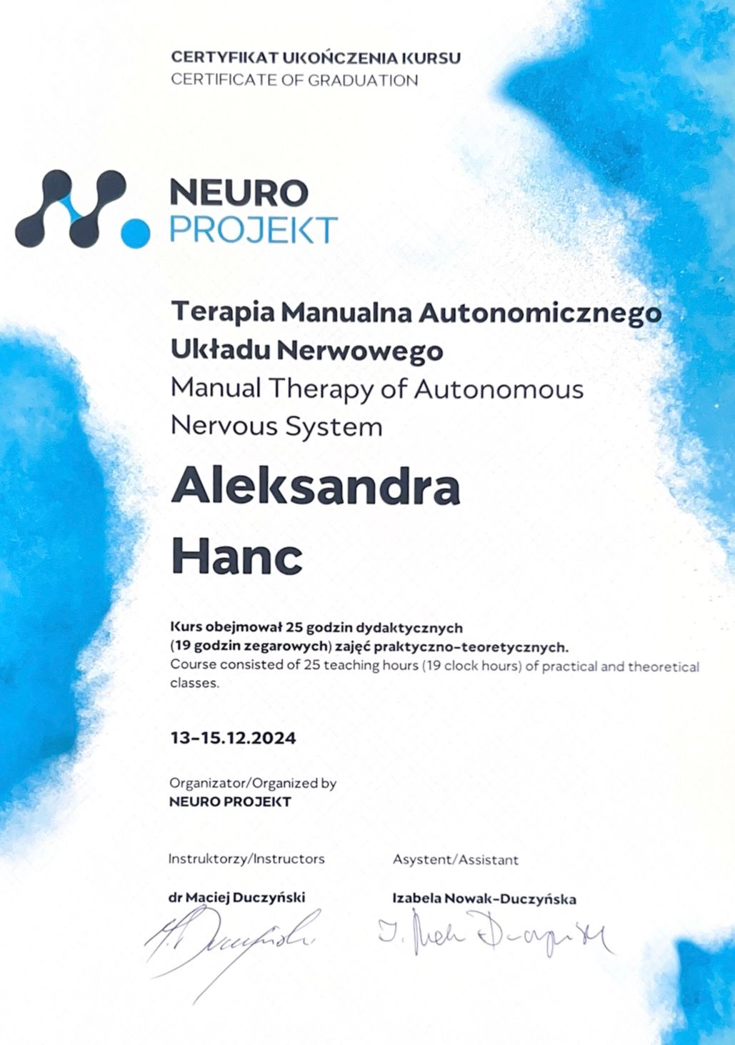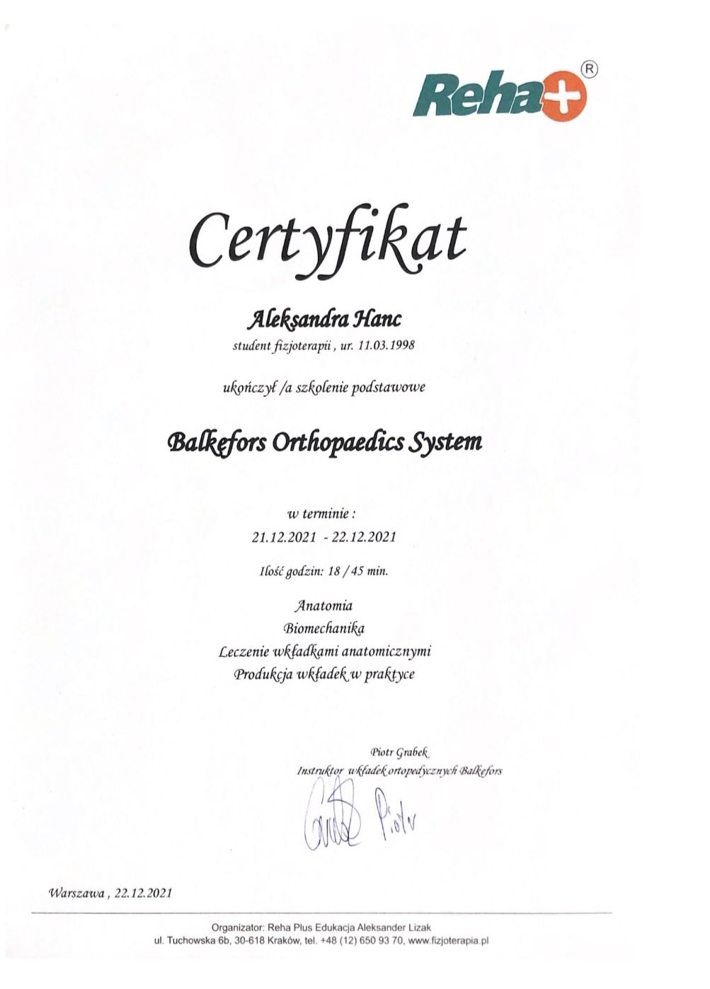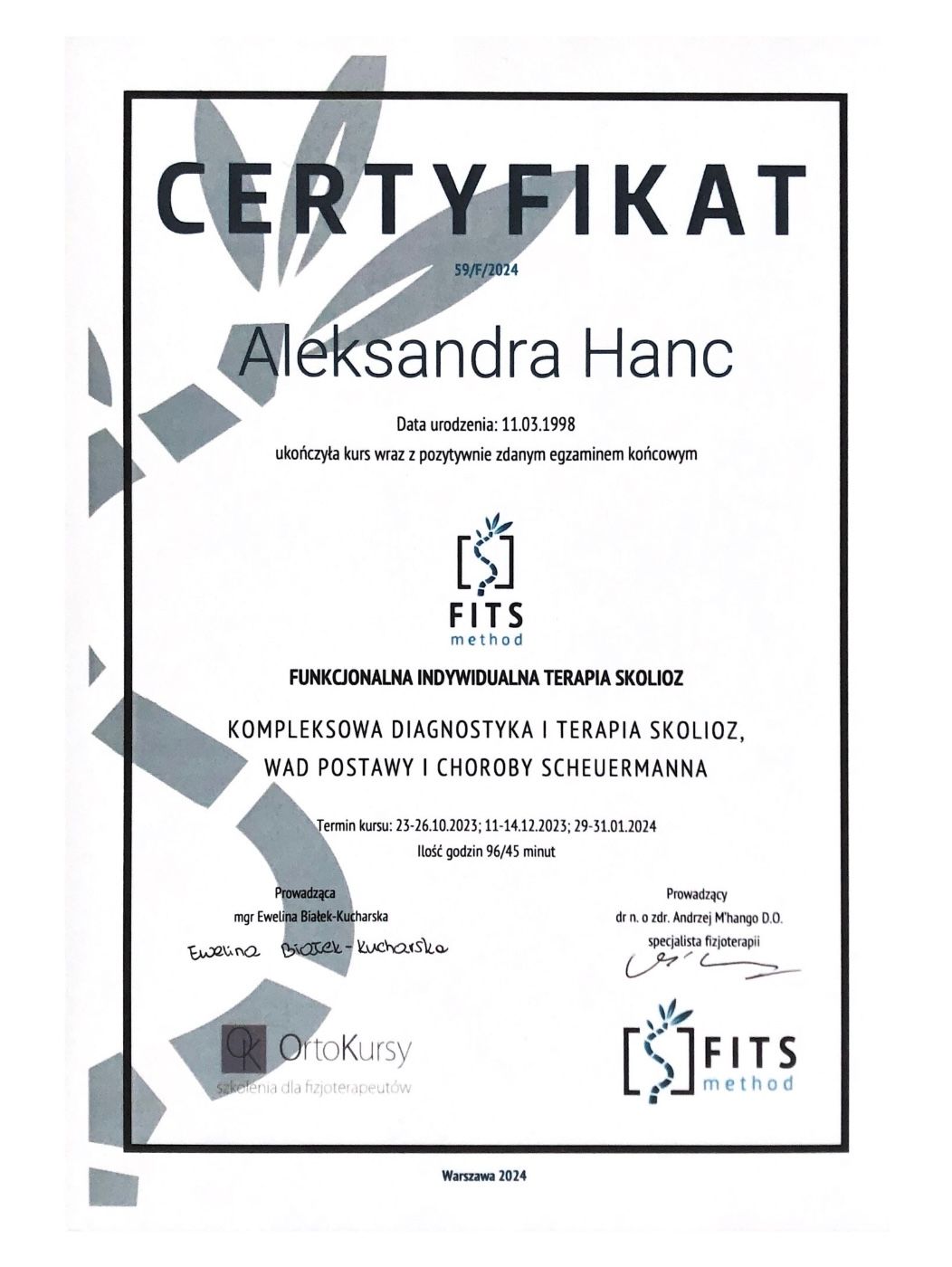 Mgr Aleksandra Hanc w zespole Idea Ortopedia (ul. Piękna 15, Warszawa).