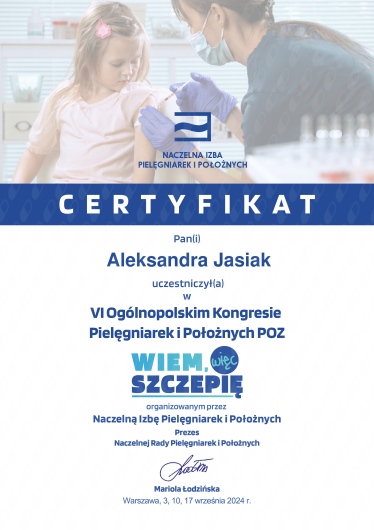 Cały czas dbam o podnoszenie swoich kwalifikacji - ukończyłam wiele kursów, między innymi doradcy chustonoszenia czy kurs szczepień oraz pielęgniarstwa operacyjnego.