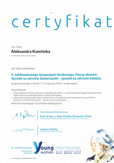 Dr Kamińska z ogromnym zaangażowaniem podeszła do moich pytań i wątpliwości, zaproponowała możliwe rozwiązanie problemu, jednocześnie uspokajając mnie. Cała wizyta przebiegła niezwykle profesjonalnie, badanie było bezbolesne, a wywiad bardzo konkretny i ukierunkowany na znalezienie rozwiązania. Cieszę się, że trafiłam do tak empatycznej, a jednocześnie doświadczonej i zaangażowanej osoby.