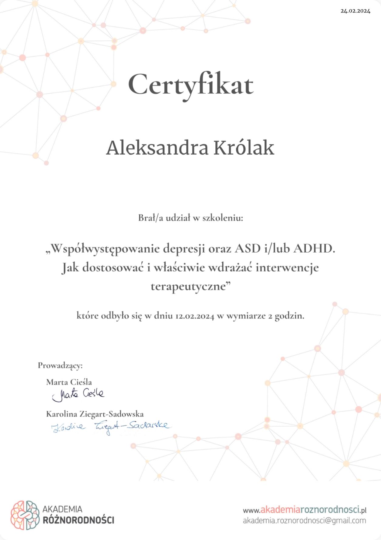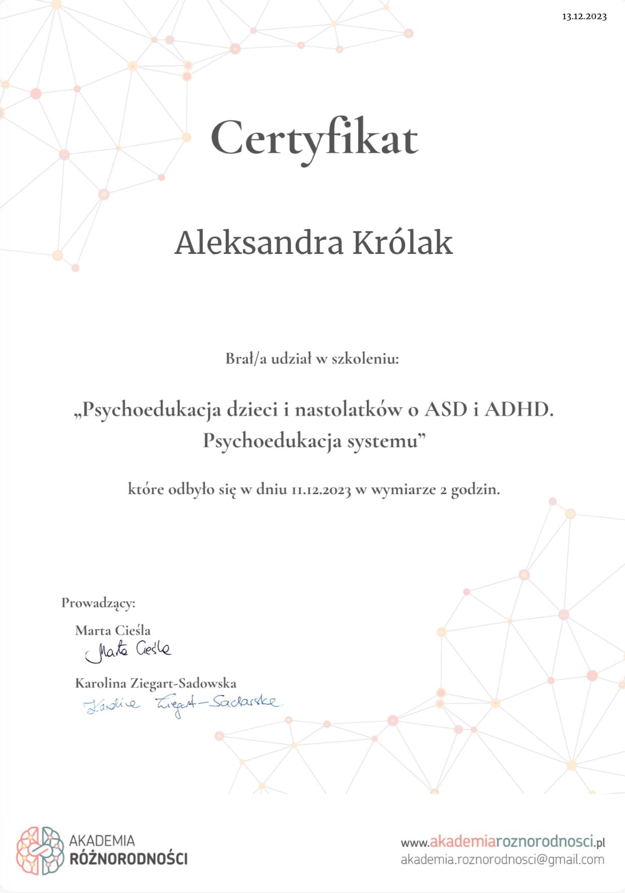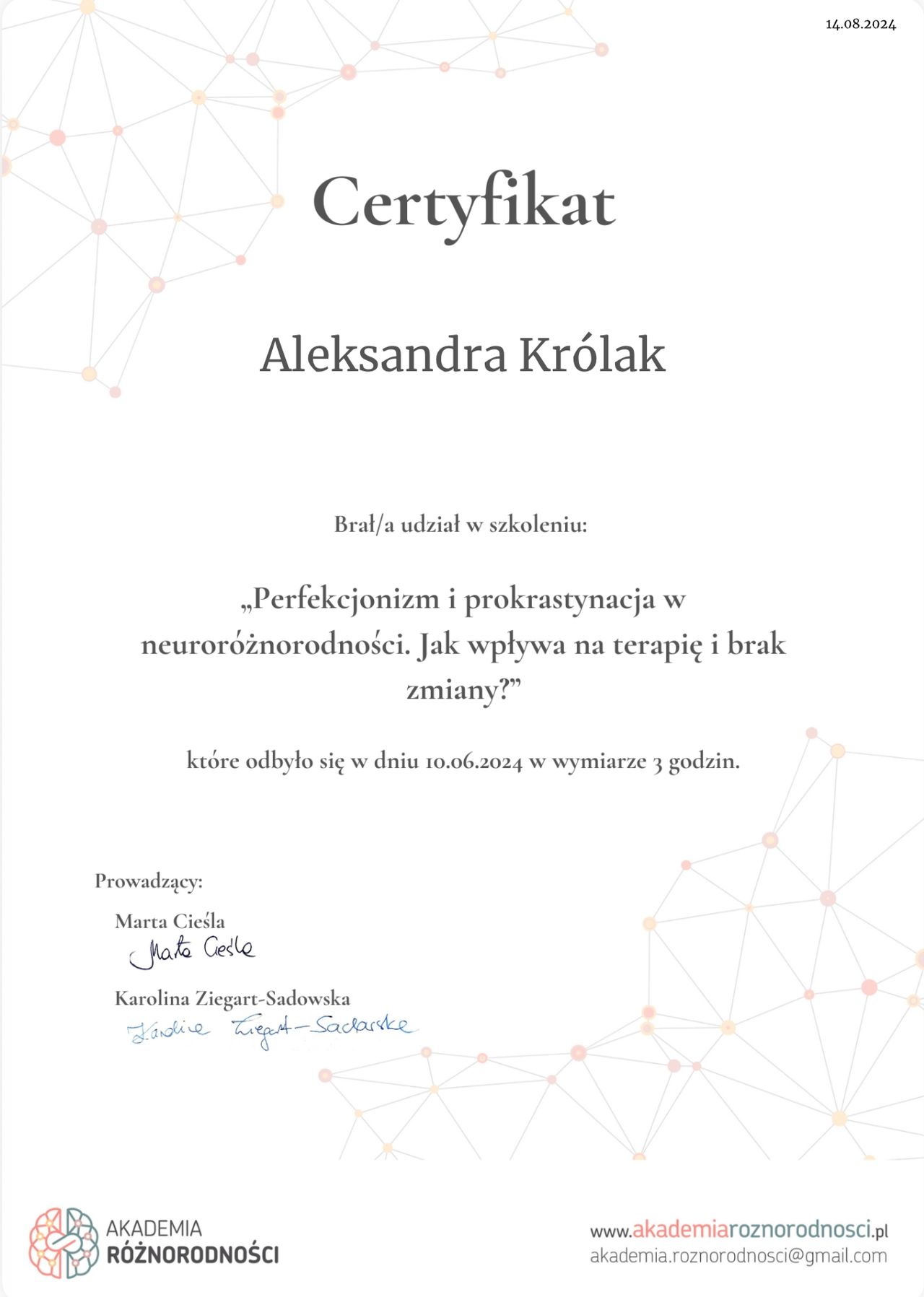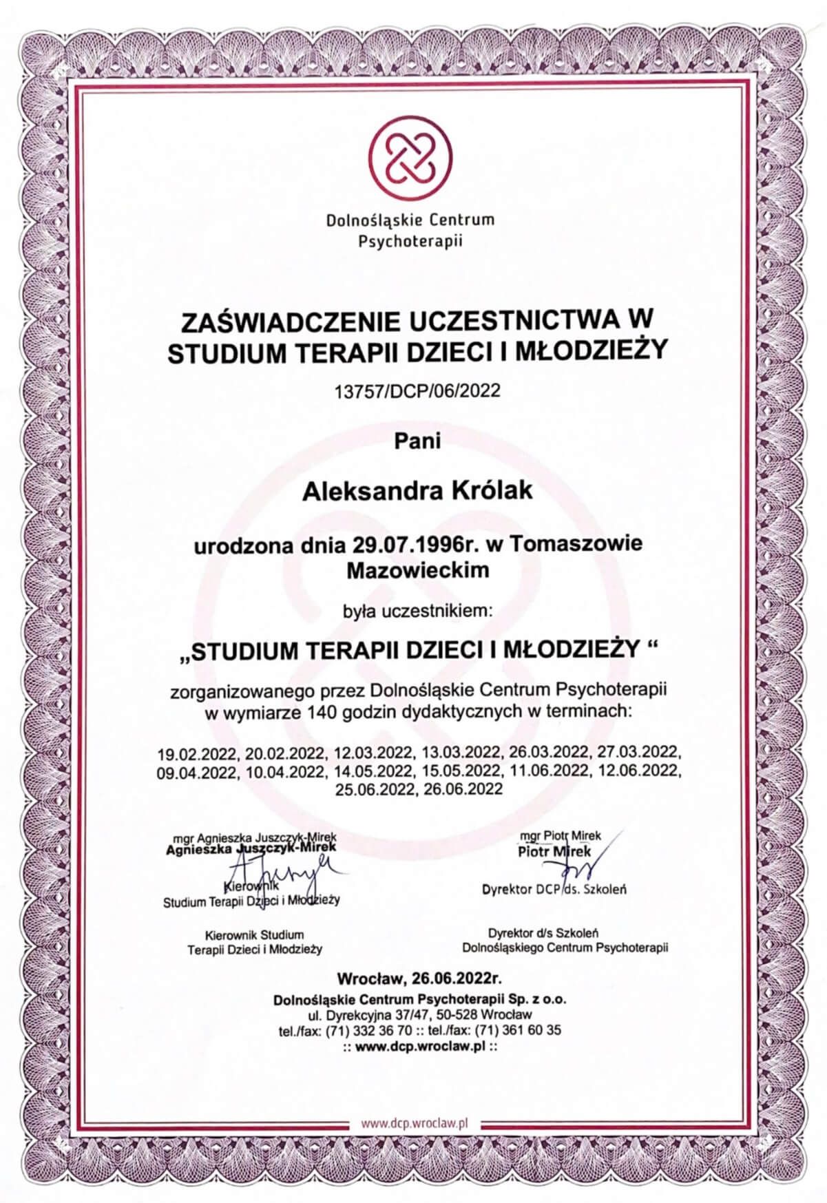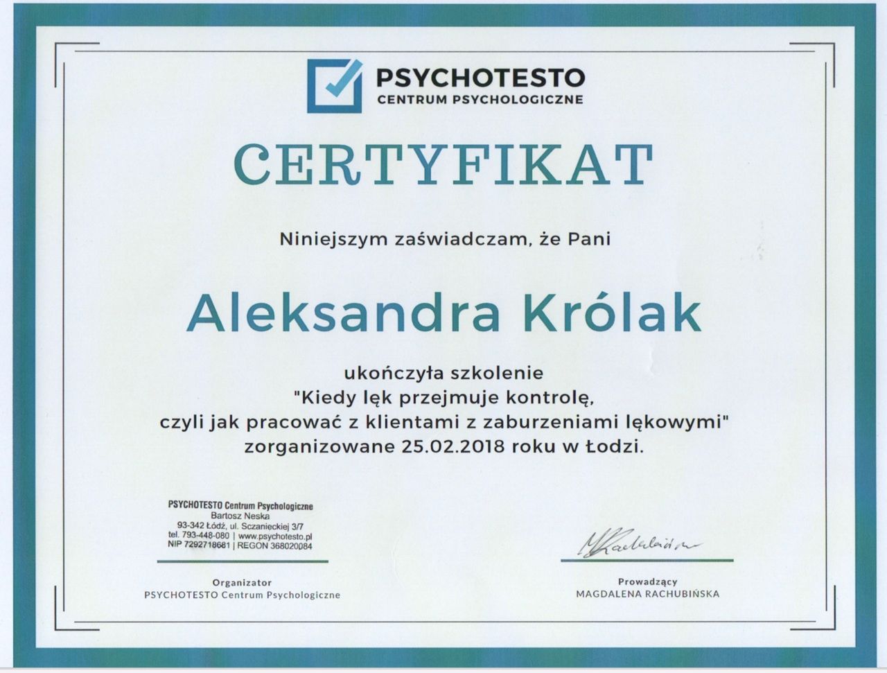Bardzo polecam panią Aleksandrę . Zrozumienie , empatia i umiejętność słuchania to na pewno jej mocne strony . Polecam