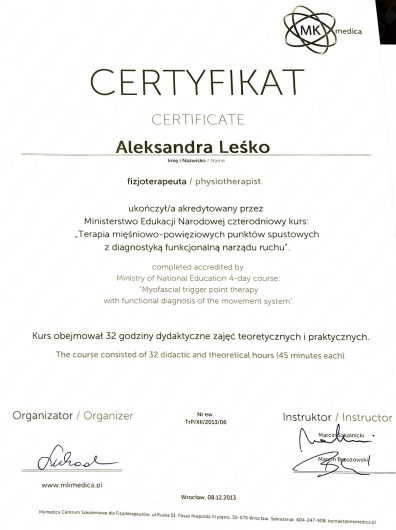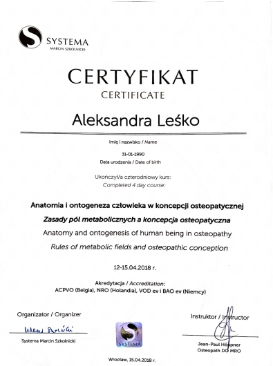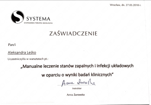 • Trening Studio 17 Terapeuta Hanna Aleksandrowicz • osteopatia •