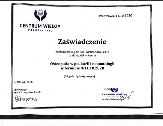 • Trening Studio 17 Terapeuta Hanna Aleksandrowicz • osteopatia dziecięca •