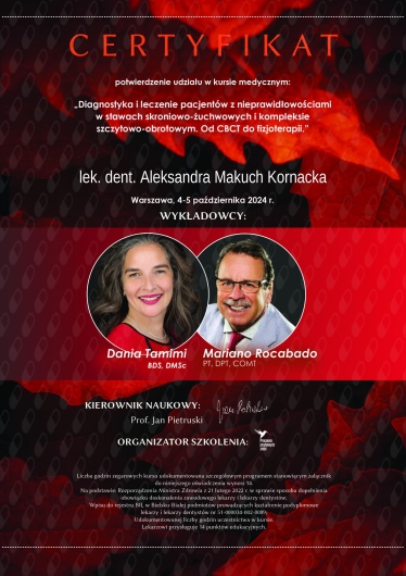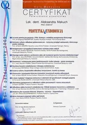 W roku 2021 uzyskałam tytuł specjalisty w dziedzinie protetyki stomatologicznej.